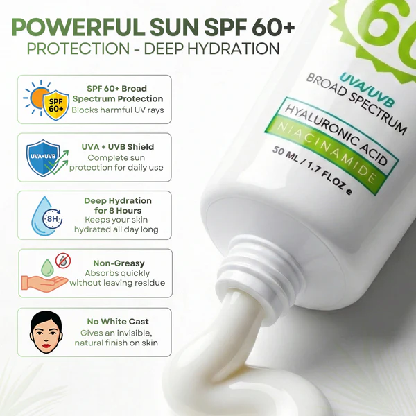 - 🧴 SPF 60+ Broad Spectrum: Protects against both UVA & UVB rays